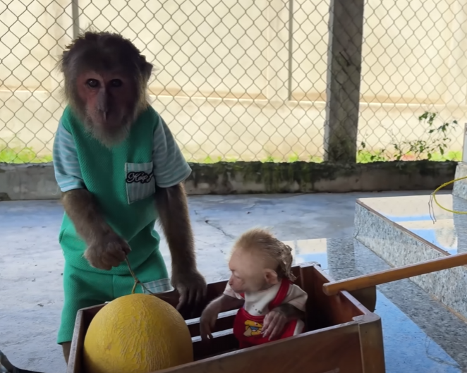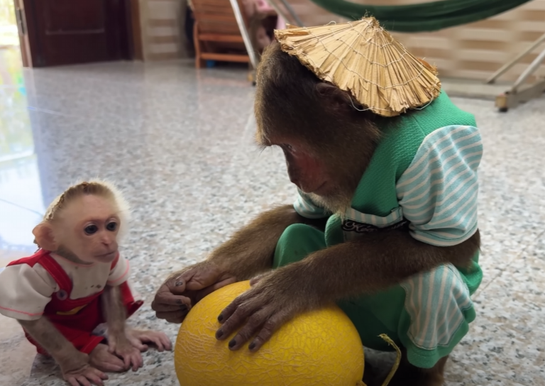 They worked together â CUTIS striking, Momo pulling â until finally the melon split open, releasing a wave of sweet, juicy scent that made both monkeysâ mouths water. The bright orange flesh glistened under the sunlight.