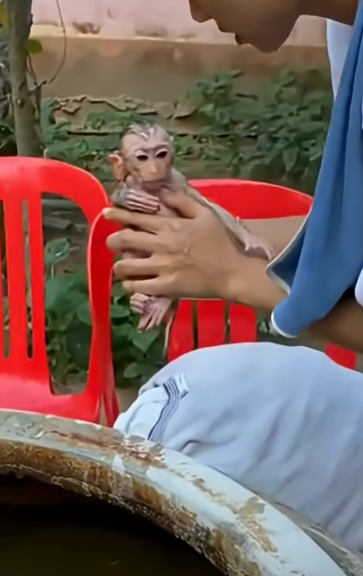 And so, each day, as the sun dipped low and the water shimmered softly, bath time became a quiet celebration of that love—a simple, heartwarming bond between a kind owner and his playful baby monkey. 🐒💧❤️