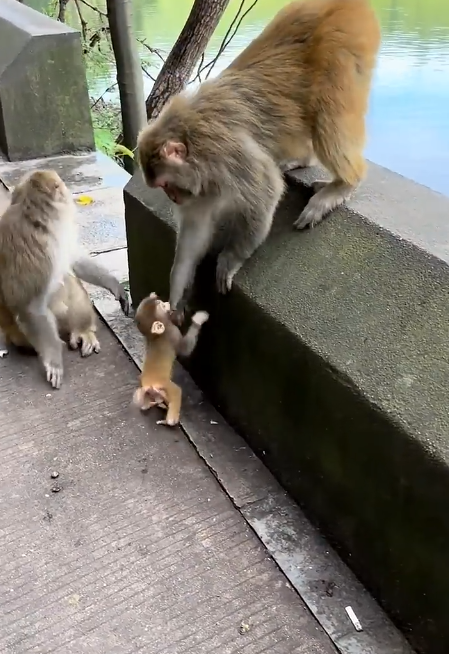 The baby monkey doesn’t want to be away from its mother at all — because love, once felt so deeply, never truly lets go.