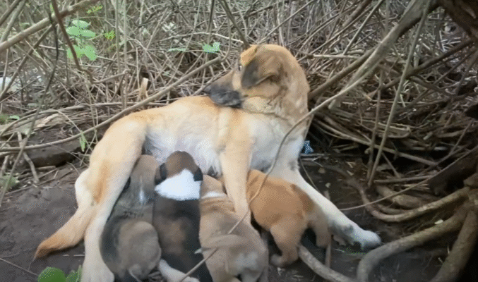 The little ones recognized her instantly. Tiny cries filled the air again — this time not of fear, but joy. They crawled toward her, tumbling over one another, tails wagging weakly.