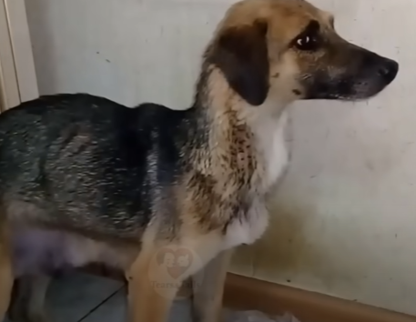 It was one of the hottest afternoons of the year when we first spotted her. She crouched near a shallow puddle in the middle of a dusty alley, her body trembling, fur matted with dust and grime, and eyes wide with desperation. At first glance, she looked like any stray dog trying to survive the harsh city streets. But something about her demeanor immediately caught our attention — it wasn’t hunger or thirst driving her, it was fear, pain, and an urgent need we could almost feel radiating from her tiny frame.