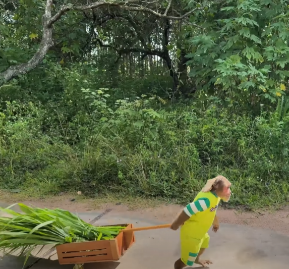 CUTIS ignored them both. She kept digging until her little hands reached something buried beneath the soil — a small, round object wrapped in leaves. With a triumphant squeal, she pulled it out and waved it proudly in the air.