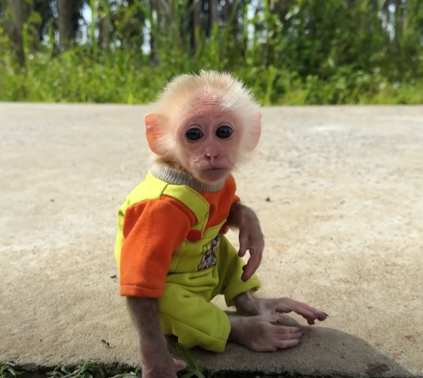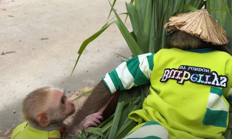 The Baby monkey’s eyes widened. “Oo-oo! What is that?” he chirped, hopping closer.