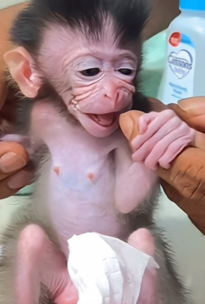 Every parent knows that diaper changes can be a battlefield. But when the “baby” in question is a mischievous little monkey named Cici, things can get hilariously out of hand. Cici is a tiny, fluffy baby monkey with the most expressive face you’ve ever seen—big round eyes, a tiny pouty mouth, and eyebrows that seem to have a mind of their own. And today, her owner, Lina, is about to face one of the funniest challenges of her day: changing Cici’s diaper.