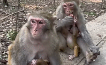 The golden morning sun filtered softly through the window, touching Mommy’s face as she sat on the wooden porch, a gentle smile curving her lips. Her hair was slightly messy, her hands busy peeling a banana for the baby monkey sitting in her lap. Everyone called her “Mommy Cute” — not just because she looked adorable when she smiled, but because her heart overflowed with love for every little creature around her.