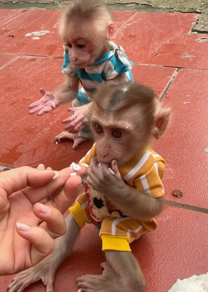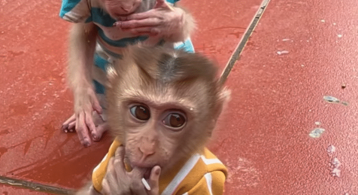 Every morning, Luna prepared breakfast for her little one. She loved to bring him fresh bananas, juicy papayas, and sometimes even a few sweet mangos that she had picked from the nearby orchard. Usually, Milo would jump up and down with joy the moment he saw her returning with food. He’d squeal, clap his little hands, and rush over to grab the fruit.