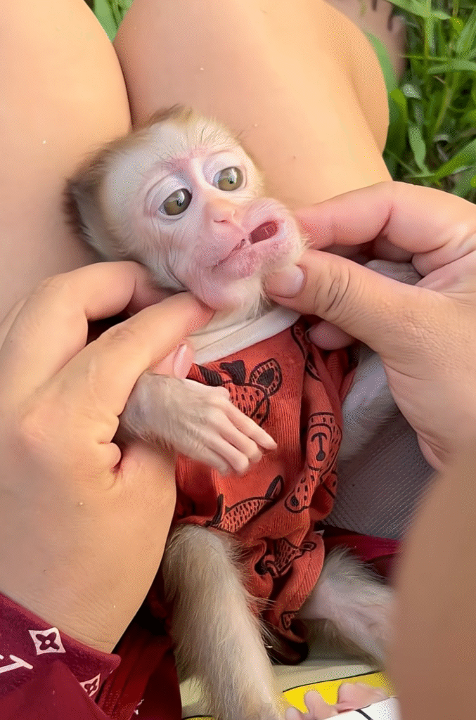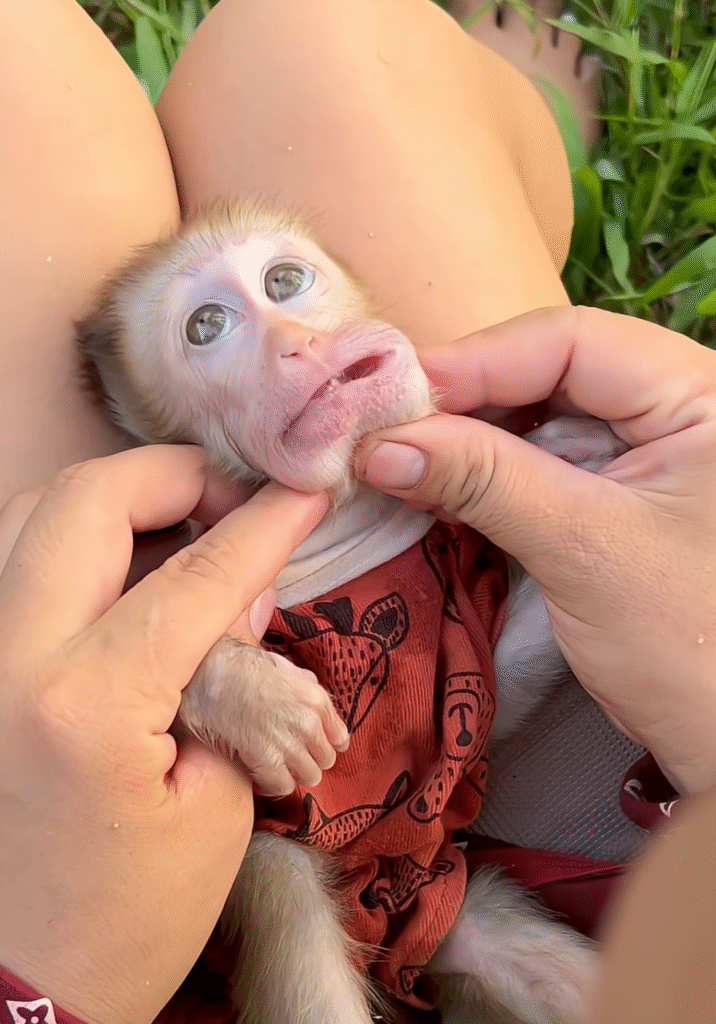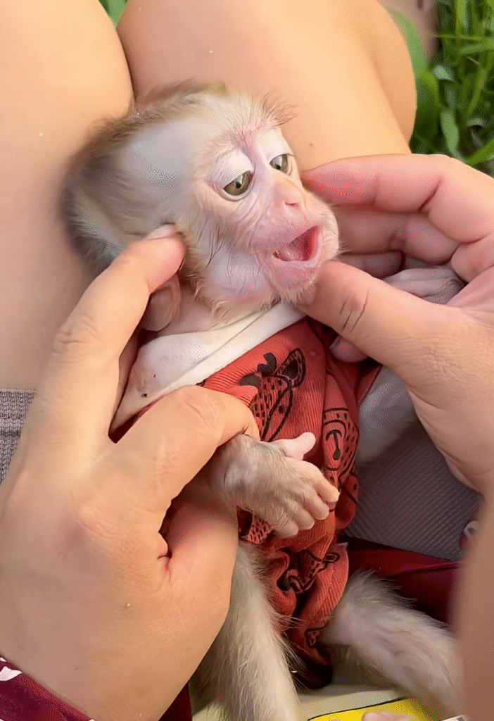 Every morning, as the first rays of sunshine touched the green leaves, Xuxu would wake up on her favorite soft blanket. Her owner, a kind young woman named Lina, would gently lift her and whisper, “Good morning, Xuxu!” The baby monkey would respond by wrapping her tiny arms around Lina’s neck, giving the sweetest hug anyone could imagine. Her soft little face would press against Lina’s cheek as if saying, “I love you, Mommy!”