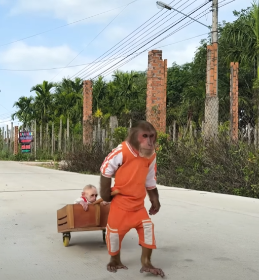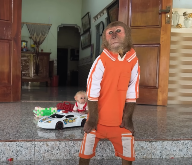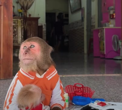 It was an ordinary morning in the lush green jungle, where the sunlight filtered through tall trees and painted the ground in gold and shadow. The forest was alive with gentle sounds — chirping birds, rustling leaves, and the chatter of monkeys waking from their leafy beds. Among them were two of the jungle’s most beloved figures: CUTIS, the clever, playful young monkey known for her curiosity, and her loyal little companion, the Baby monkey, whose energy could brighten even the cloudiest day.