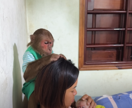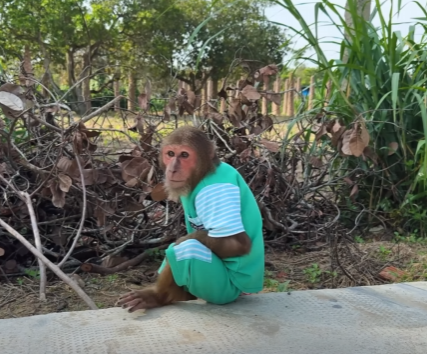 Baby monkey, who had been busy playing with a leaf, noticed the unusual silence. He jumped up, scampering over to CUTIS. “Brother, what’s wrong with Mom?” he whispered, his big eyes full of worry.