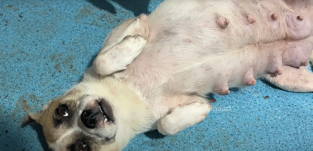 Luna’s head lifted weakly, her eyes meeting Emily’s. There was fear there — fear born from neglect, hunger, and too many days of pain — but also a quiet plea for help. Her puppies, four tiny bodies huddled against her ribs, were barely strong enough to wiggle.