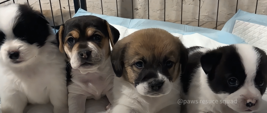 The puppies — named Hope, Sunny, River, and Star — were weak but alive. Thanks to Luna’s desperate efforts, they were clinging to life. The rescue team began bottle-feeding them with special puppy formula while Luna received fluids through an IV. But as soon as she regained a bit of strength, she turned her head toward the small kennel where her babies were kept. She let out a faint whine — a mother’s instinctual call.