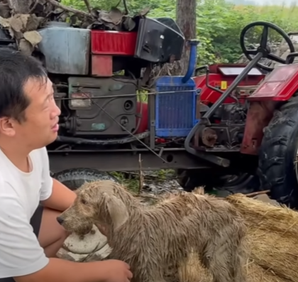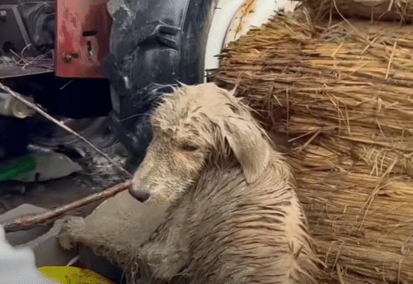 The night was cruelly cold, the kind that bites into the bones and makes even the stars look distant and uncaring. Snowflakes drifted lazily through the air, settling on a small, trembling figure curled up beside a garbage bin behind an old apartment building. It was a young dog — thin, shivering, and alone. His fur, once golden and soft, was matted and dirty. His ribs were visible beneath the skin, and his eyes, though tired, still carried a spark of hope that refused to die.