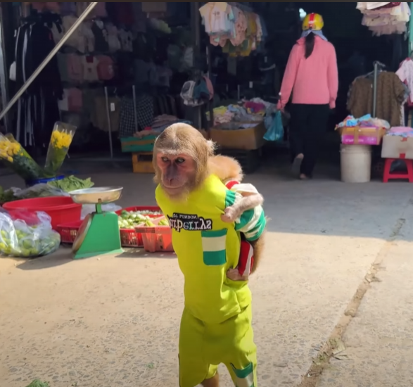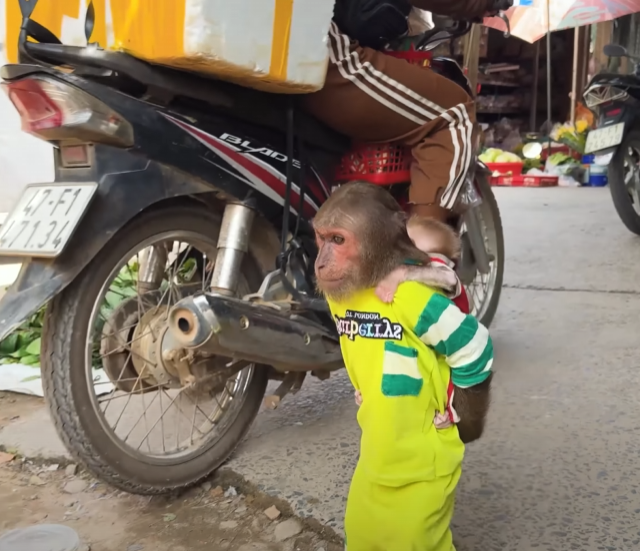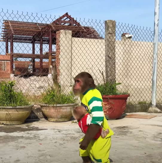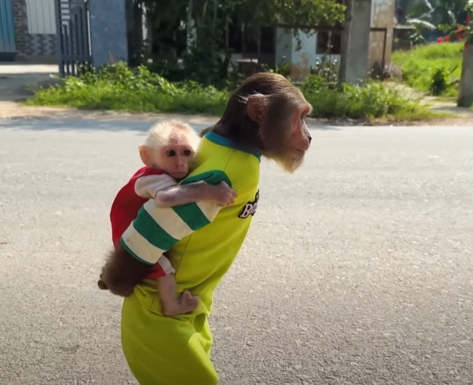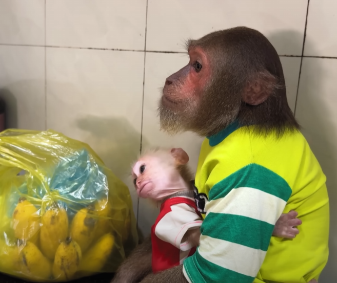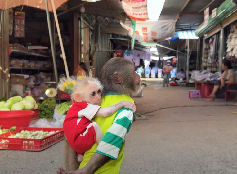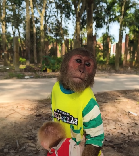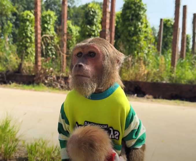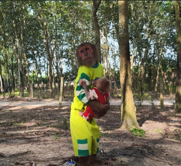 Without hesitation, CUTIS gently picked up the baby. The tiny one clung tightly to his fur, seeking warmth and comfort. CUTIS whispered in soft monkey sounds, reassuring the baby that everything would be okay. His friends OG and ToTo watched from a distance, eyes wide with worry. They had never seen CUTIS so serious before.