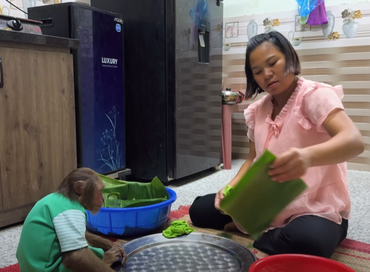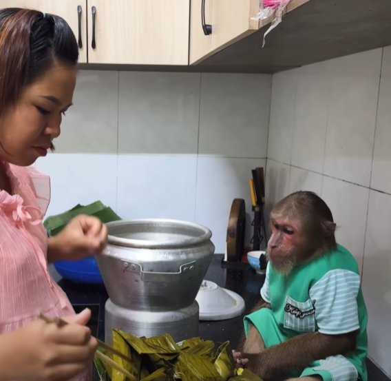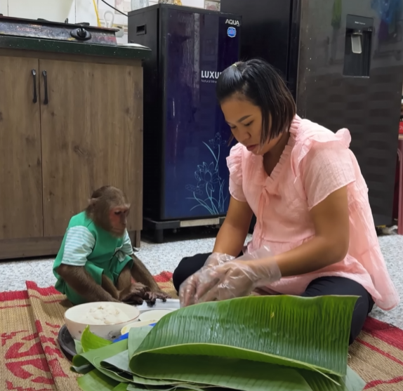 After the batter was ready, Mom poured it into banana leaves and placed them in the steamer. The sweet smell began to fill the house — warm, soft, and inviting. CUTIS couldn’t stop sniffing the air.