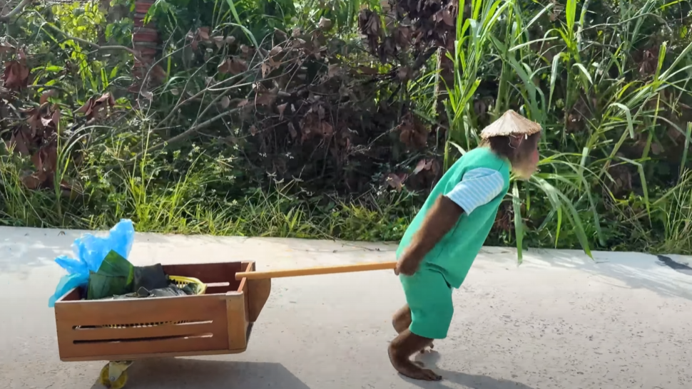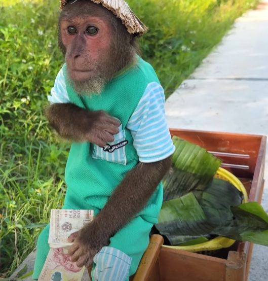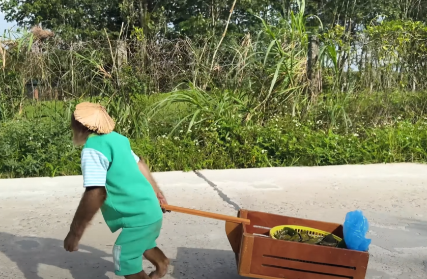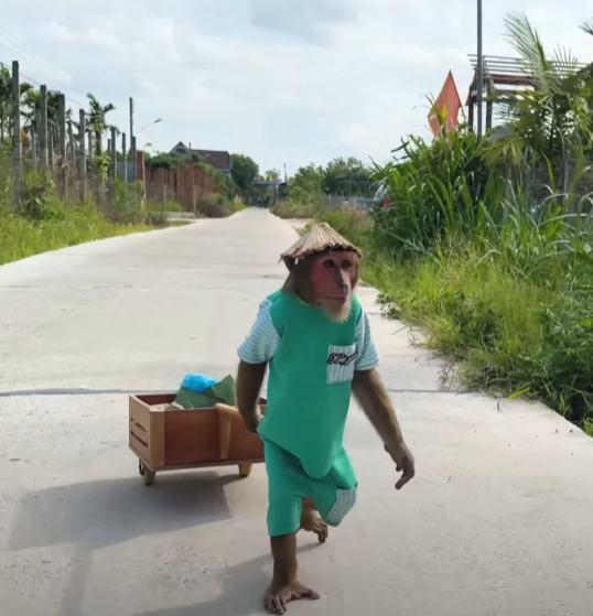 People turned their heads, surprised and curious. CUTIS then broke into a silly little dance — spinning, hopping, and clapping while balancing the basket on his head! Everyone burst into laughter at the sight of the funny little monkey dancing his heart out.