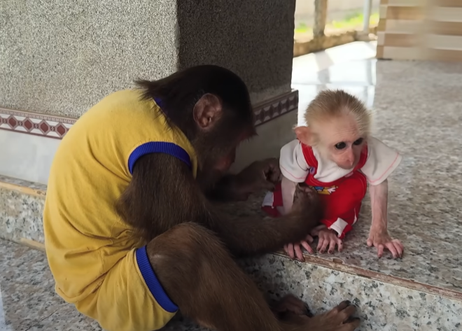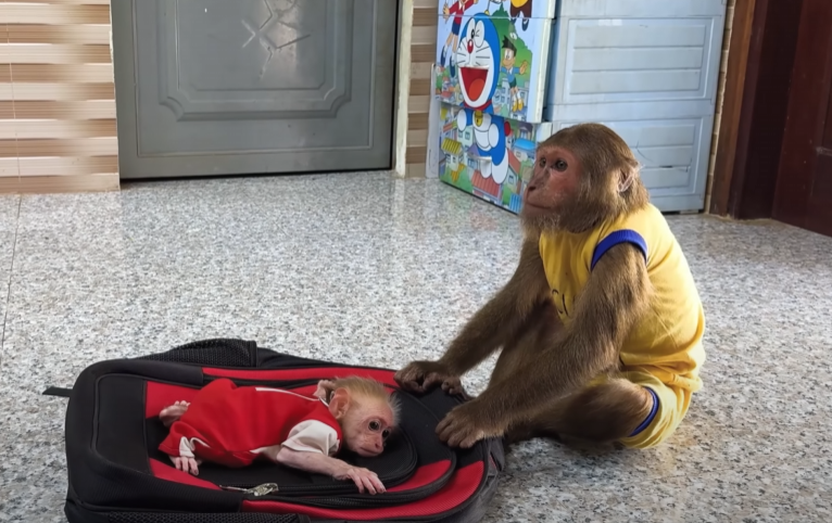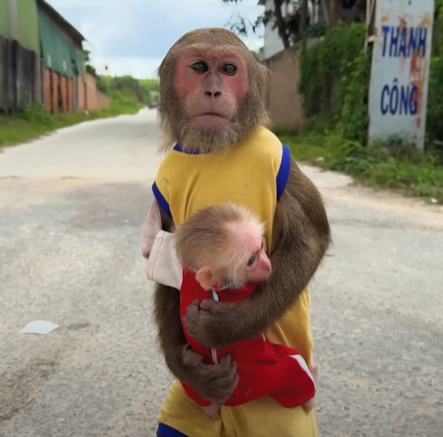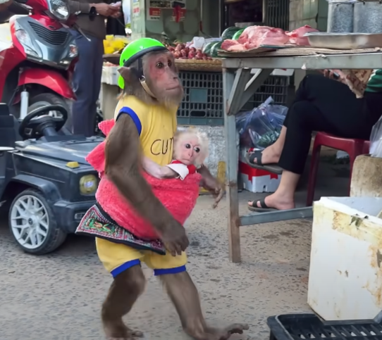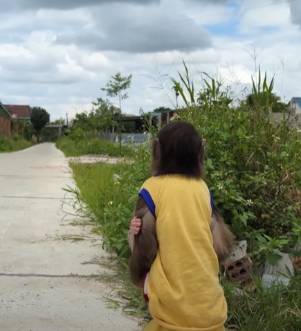 He gently lifted the baby monkey onto his back. “Come on,” he said softly, his eyes determined but sad. “We’ll find her.”