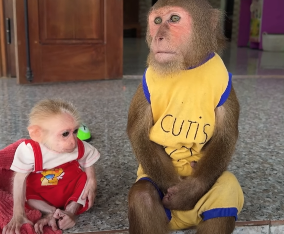 Every morning, she would call them for breakfast — her gentle voice echoing through the trees as she handed out bananas and fruits. But today, only the wind answered. CUTIS looked at the small baby monkey beside him, who was clutching his tail nervously. The baby’s big eyes were filled with confusion.
