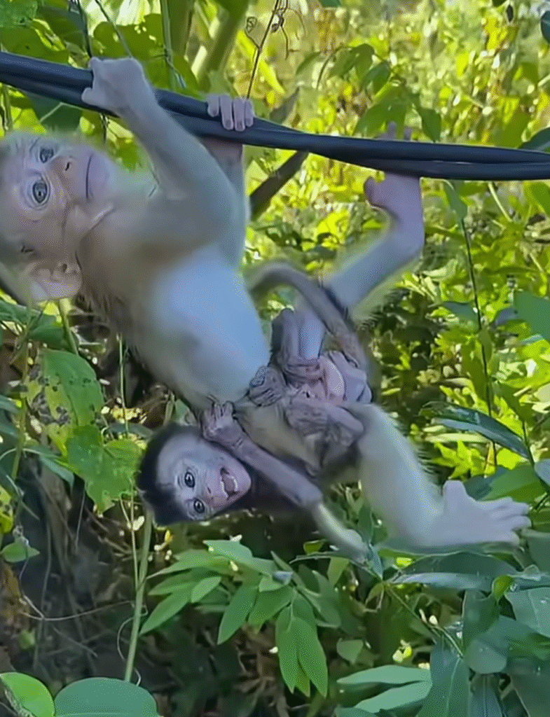 Mom watched from a branch above, smiling proudly. She loved seeing her little one discover the joy of freedom and friendship. But she also knew — the jungle could be tricky.