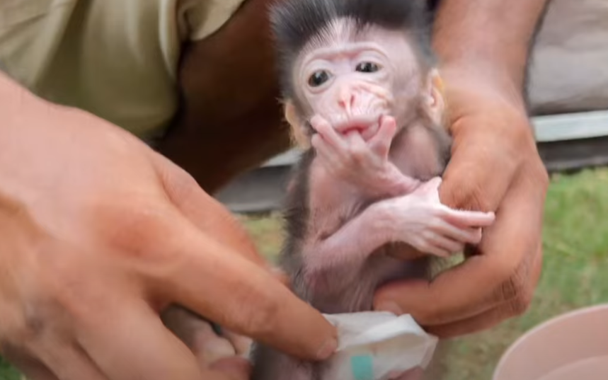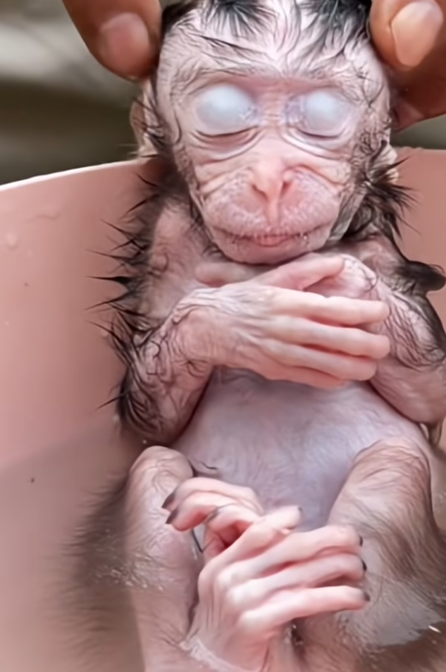 Every afternoon, when the sun begins to dip behind the tall mango trees and a golden glow fills our backyard, it’s bath time for my little baby monkey, Cici. Most baby monkeys love splashing in the water, but not Cici. She has her own way of showing her feelings about bath time—by pretending to sleep! 😴💦