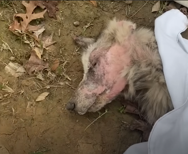 By the time a rescue team heard about Koda, he was almost skeletal. He no longer had the energy to run. Even the thought of approaching humans seemed to terrify him. He wandered aimlessly near an abandoned barn, collapsing often, barely able to lift his head.