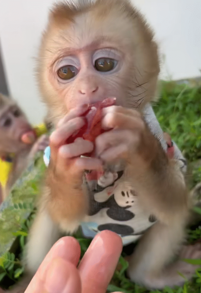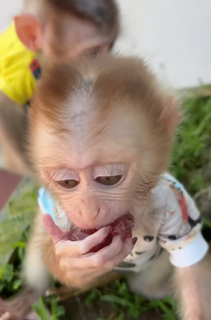 Bin was only a few months old, a tiny ball of golden-brown fur with a face so expressive that every look told a story. He loved exploring, climbing, and most of allâhe loved food. Especially fruit. Bananas, mangoes, papayasâanything sweet and juicy made his little heart dance with joy.