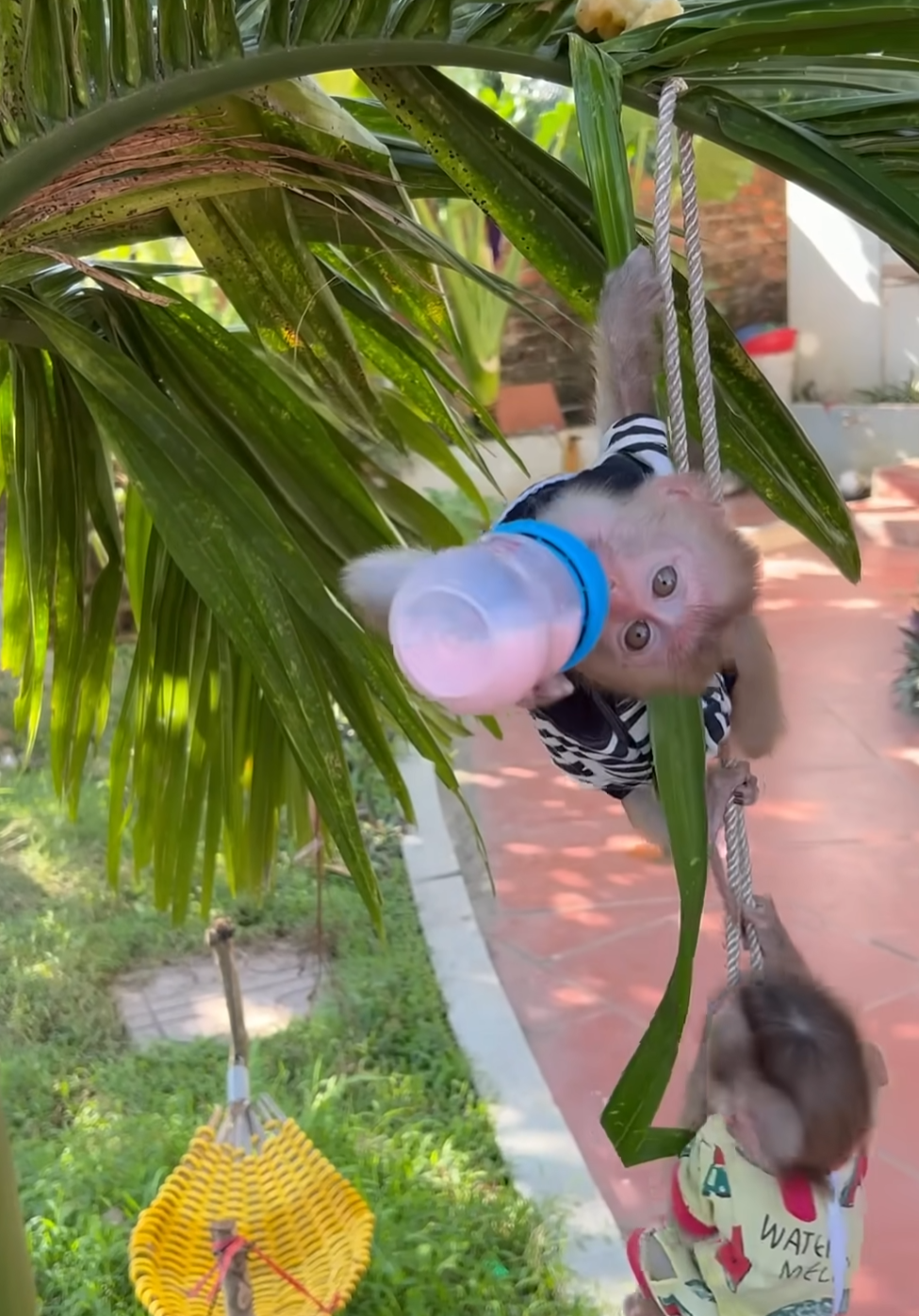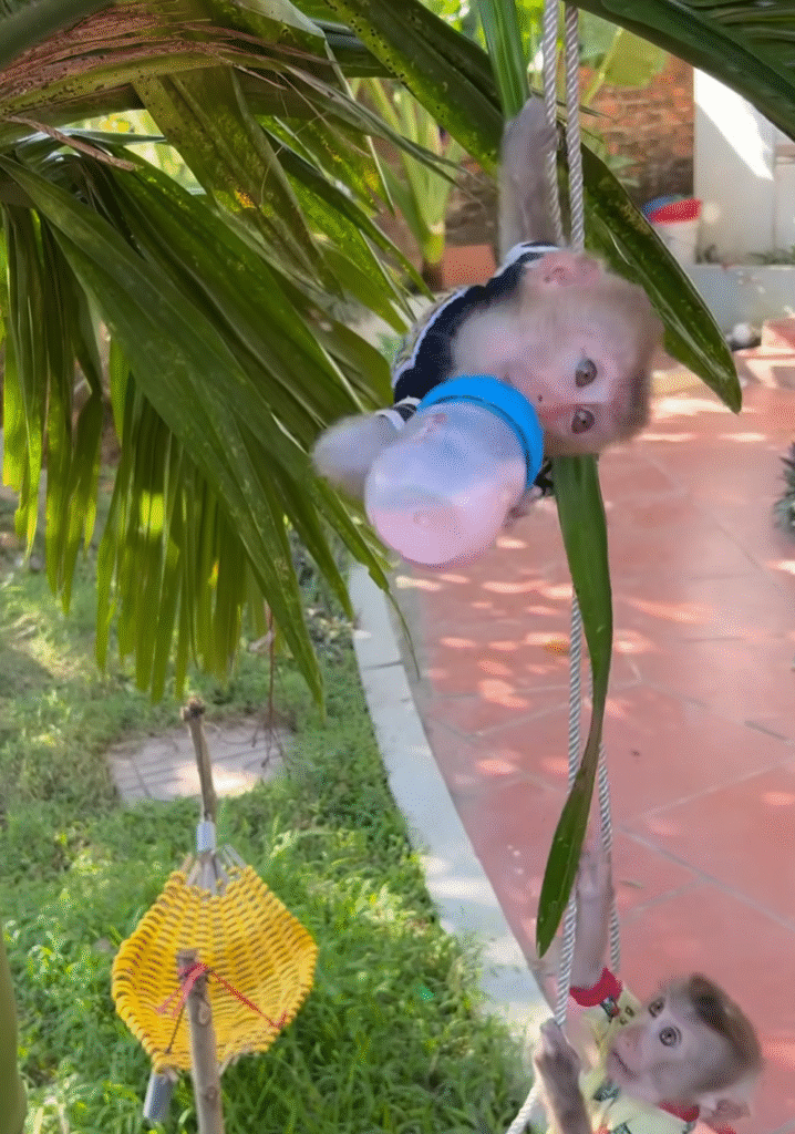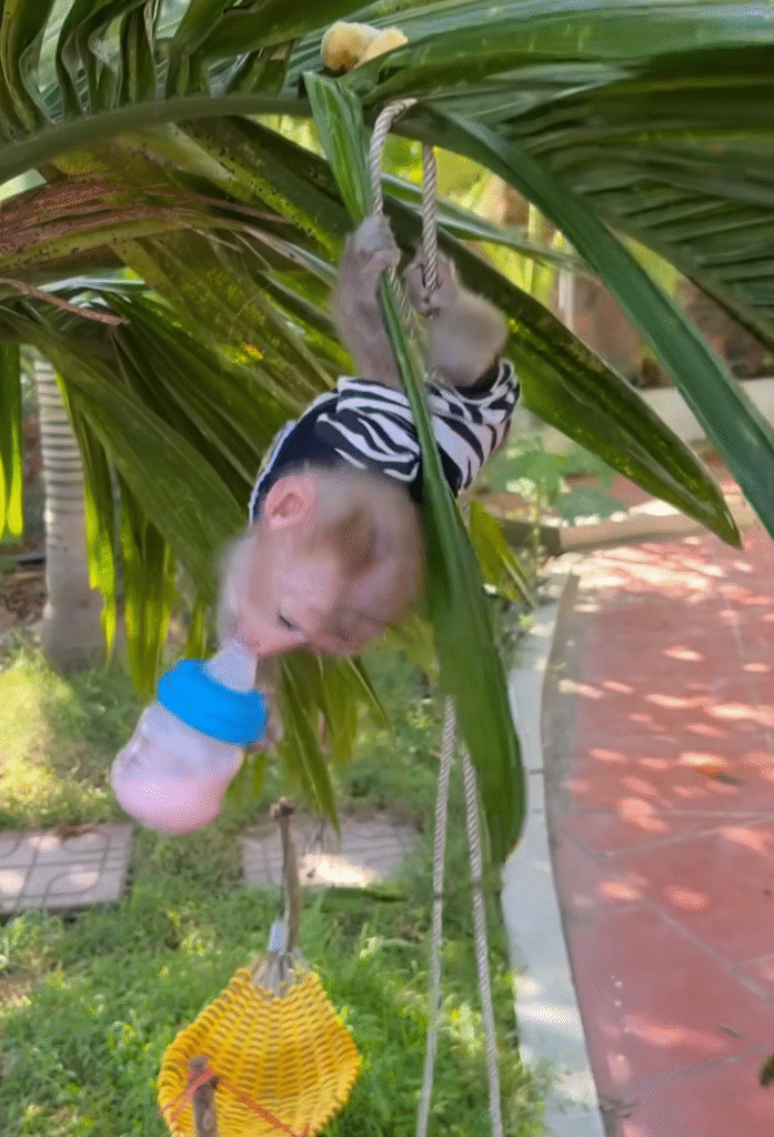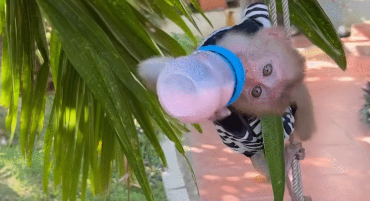 Baby Monkey Climbs High to Get Milk 🐒🍼💞