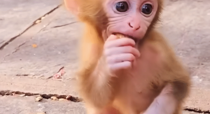 The jungle was alive that morning โ a symphony of chirping birds, rustling leaves, and warm sunlight spilling through the trees. High in the canopy, a small baby monkey clung tightly to its mother. His name was Tino. He was barely a few months old, with soft golden fur, wide curious eyes, and a spirit that burned as bright as the morning sun.