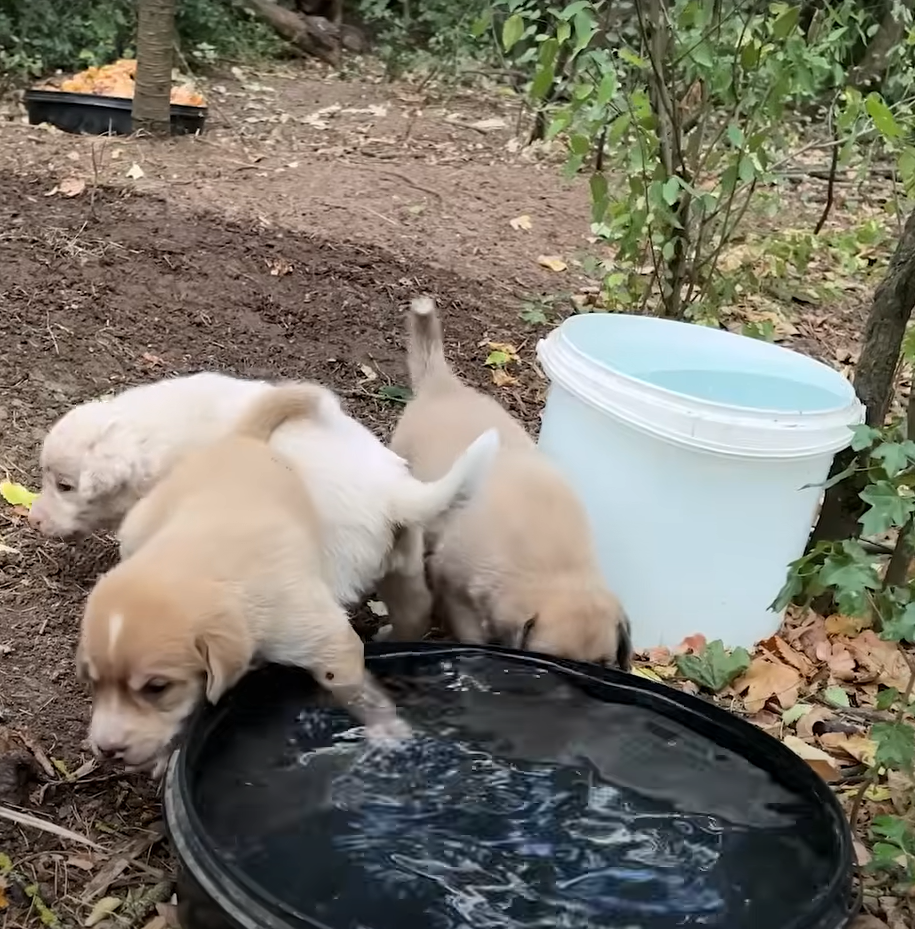 That morning, Luna was about to teach them something important — something simple to humans, but monumental in a puppy’s life. She was going to teach them how to drink water.