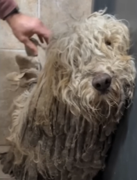 It took nearly two hours before she could slip a leash around him — gently, carefully, without sudden movements. Even then, his body was trembling violently. When she lifted him into the car, he didn’t resist, but he didn’t relax either. His eyes, wide and full of fear, stared at her the whole ride back to the shelter.