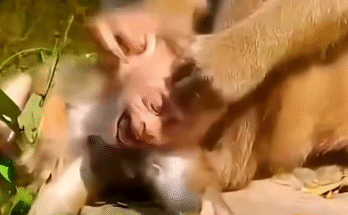 The morning sun peeked gently through the banana leaves, lighting up the little yard where Kevin, the baby monkey, loved to play. His soft fur glowed golden in the sunlight, and his curious eyes were full of mischief. Across the yard, Sumi—another baby monkey—sat cuddled in a warm blanket, drinking from her favorite milk bottle. The sweet smell of milk filled the air, and the gentle sucking sound made Kevin’s tiny ears twitch with temptation.