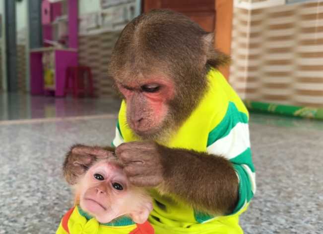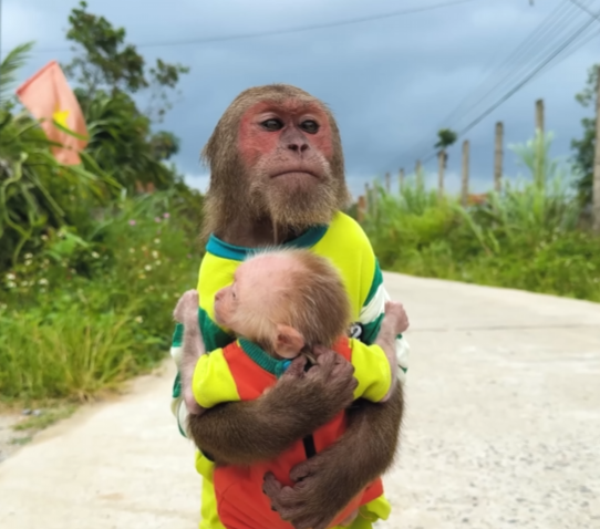 “Look, Baby Monkey! These clothes are smaller than your hand!” he exclaimed.