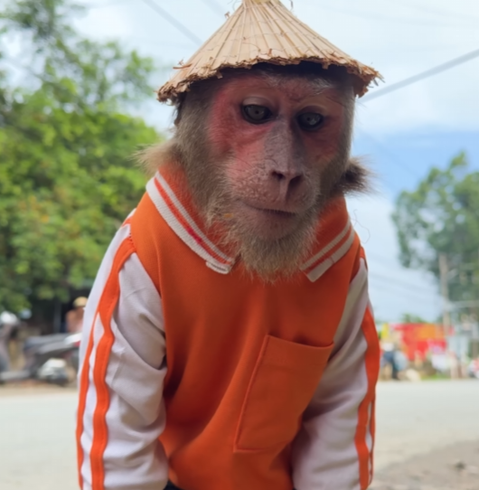 Without wasting a moment, CUTIS grabbed a stick—his favorite “investigation tool”—and motioned for the baby monkey to follow. Together, they dashed down the dirt path, their little feet kicking up puffs of dust. When they reached the pond, the sight broke their hearts.