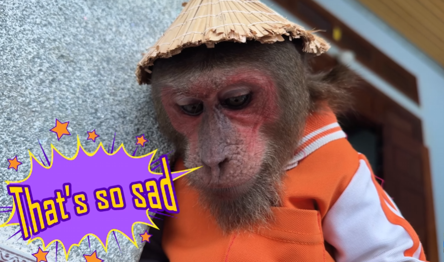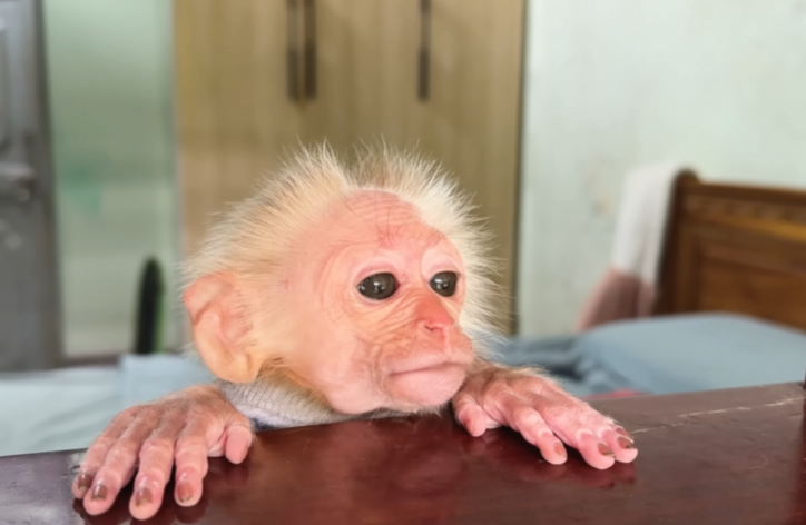 CUTIS’s big brown eyes filled with sympathy. He couldn’t stand seeing his friends like this. The baby monkey clutched his tiny tail nervously, watching the ducks suffer. “We have to help,” CUTIS seemed to say through his determined expression. He thumped his chest proudly, as if declaring himself a hero ready for duty.