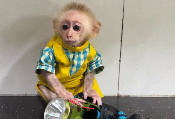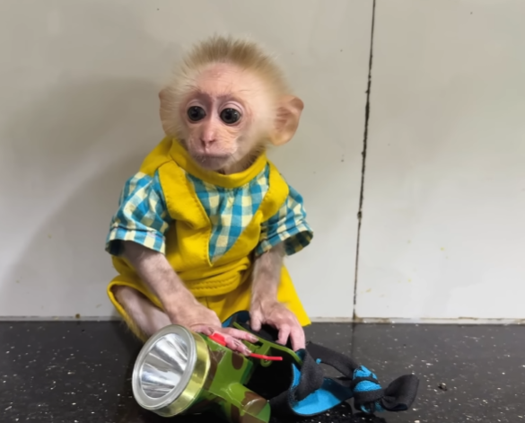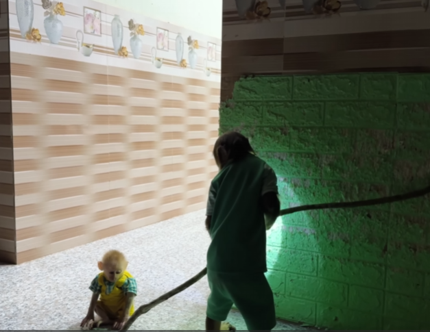 The baby monkey gasped, clapped his hands, and immediately started helping—though his idea of “helping” was more like adorable chaos. He tried carrying flowers but dropped half of them, and when he tried to glue ribbons, he somehow ended up with one stuck to his tail. CUTIS laughed so hard that tears filled his eyes.