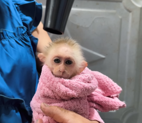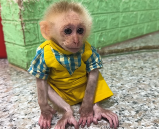 The baby monkey chirped softly in agreement, curling up in her lap.