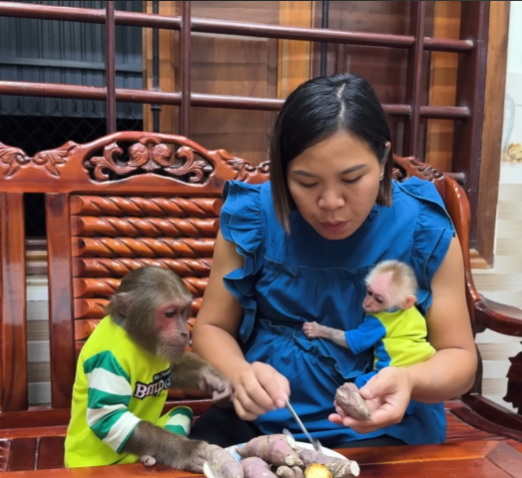 The morning sun poured softly through the open window of the little countryside house, lighting up the cheerful chaos inside. CUTIS was already awake, tiptoeing across the floor with a grin on his face, while his pregnant Mom still rested on the couch. The baby monkey, meanwhile, was curled up on a small blanket beside her, snoring softly after staying up too late playing with his toy banana.