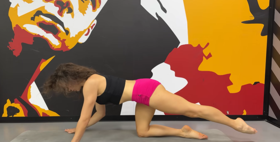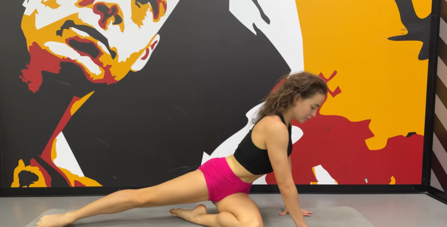 This stretch opens hip flexors and strengthens the legs — perfect after long sitting hours. Switch sides after one minute.