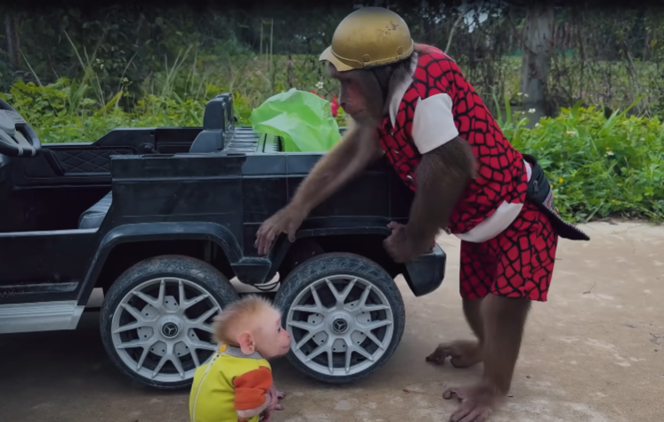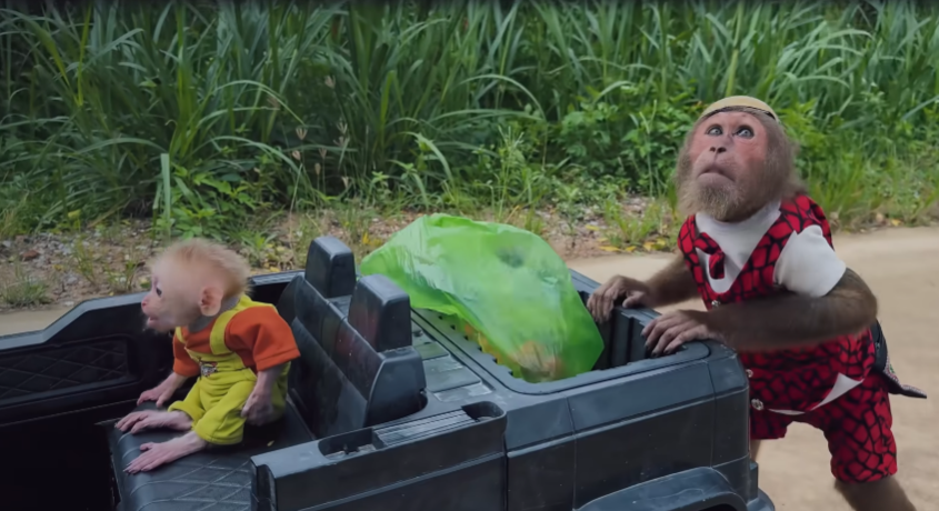 Their bond shines brightest during these moments of teamwork. When CUTIS digs small holes in the ground — probably looking for buried treasures or bugs — the baby monkey joins in, mimicking him clumsily. Sometimes he just throws dirt at CUTIS, who responds by playfully chasing him in circles until they both collapse from laughter and exhaustion.