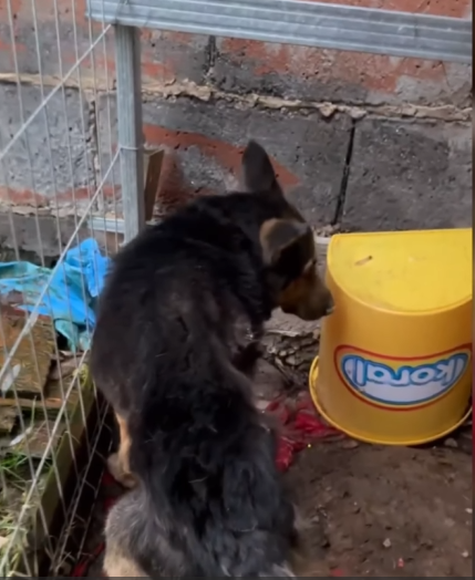 The dog’s world was a small, damp cage behind an old shed. Rusted metal bars, a broken roof that barely kept the rain out, and a chain so short he could hardly move more than a few steps. His fur had lost its shine long ago, his ribs were visible, and his eyes… his eyes told the story of years spent in silent suffering.
