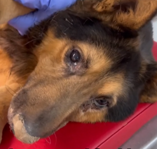 He was curled up in the corner of his cage, his fur filthy and matted, his body trembling. When I approached, he didn’t move. He just lifted his head slightly, as if too tired to hope. His eyes were cloudy and empty — eyes that had seen too much pain.