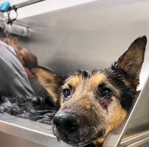 As the vet examined him, I sat beside the table, stroking his head. For the first time, I felt him press his face against my arm. Just lightly. And then, something unbelievable happened — a tear rolled down his cheek.