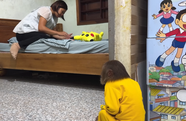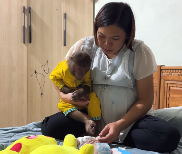 One of the humans, a kind-hearted caretaker named Yen, smiled warmly. “CUTIS is amazing,” she said. “He really knows how to take care of the babies.” She approached the monkeys gently, observing CUTIS’s technique. She realized that this was more than instinct — it was intelligence, empathy, and a deep sense of responsibility.