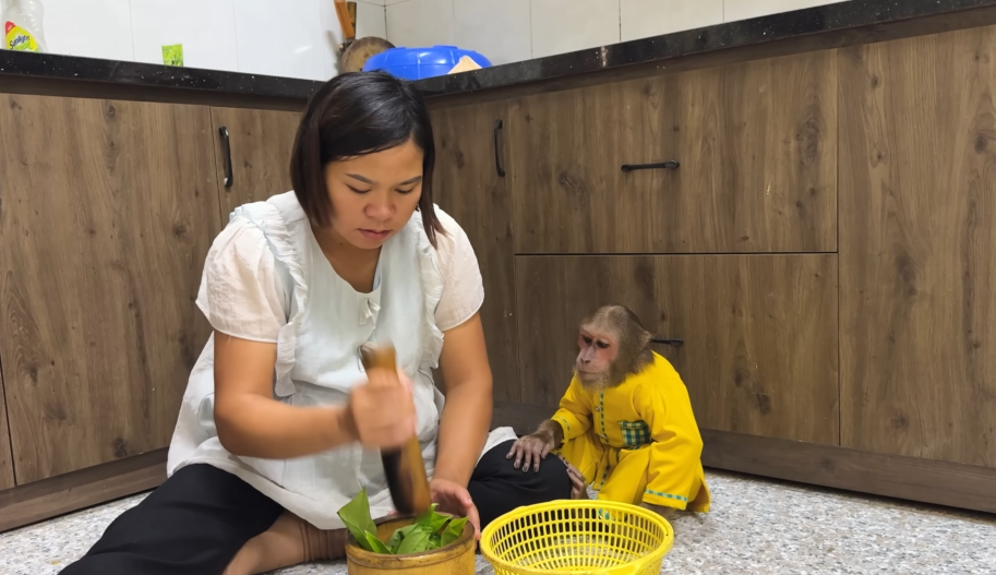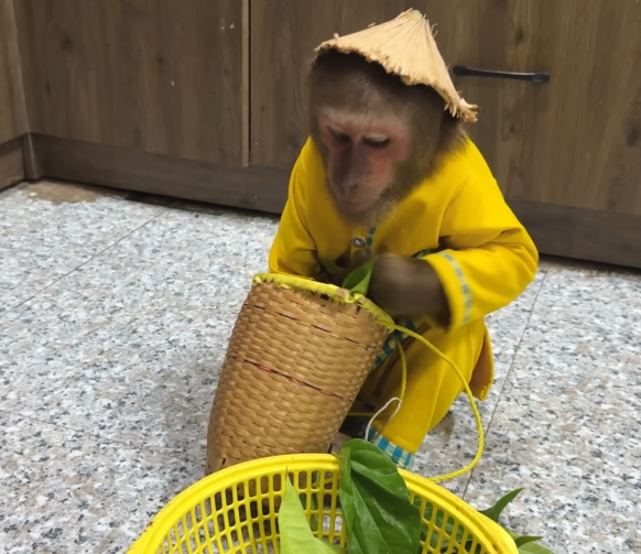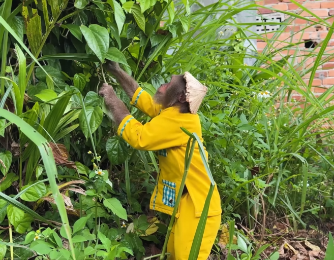 And as night fell, the humans whispered in admiration: Smart CUTIS harvests strange leaves, does a special thing to help weak Baby monkey. It was a story of love, intelligence, and the extraordinary things that even the smallest beings can achieve when they act with care and heart. 🙏