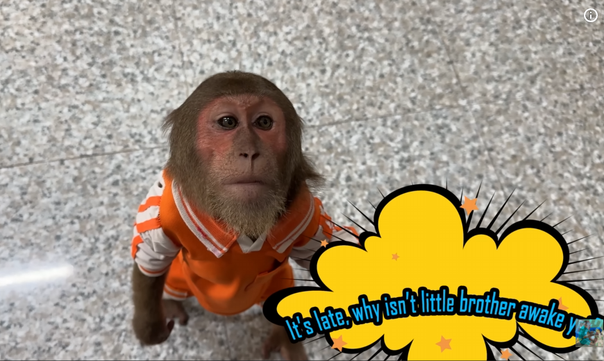 Throughout the next few days, CUTIS stayed extra attentive. Whenever Baby Monkey sneezed or coughed, he would immediately bring water or rush to Mom for help. And Baby Monkey, still a little weak but happy, followed CUTIS everywhere, clinging to him like a shadow. Their bond grew even stronger.