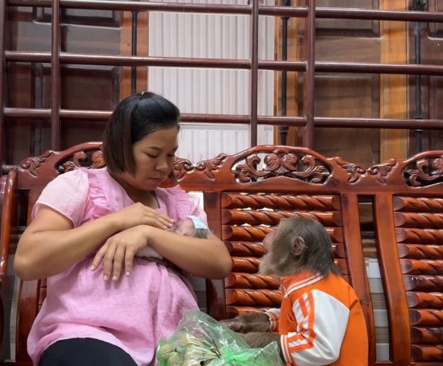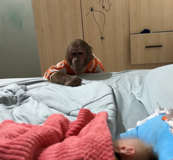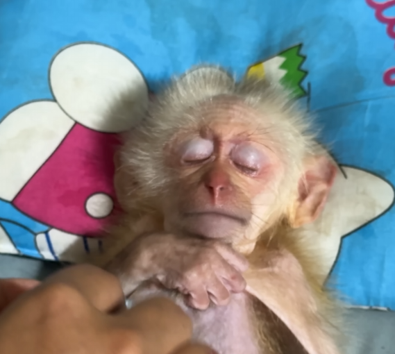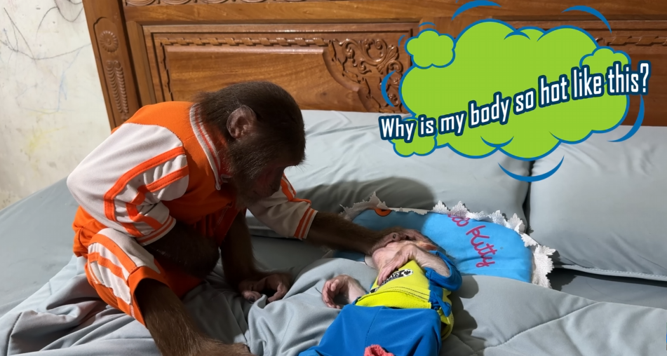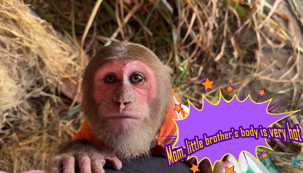 Mom immediately ran to get a thermometer and some medicine, while CUTIS stayed beside the baby, gently stroking his tiny hand. The baby looked up at him with tired eyes, as if asking for comfort. CUTIS sat down, wrapping his arms around the little one, trying to keep him warm. His tail softly brushed against Baby Monkeyās cheek, and for a moment, the baby stopped shivering.