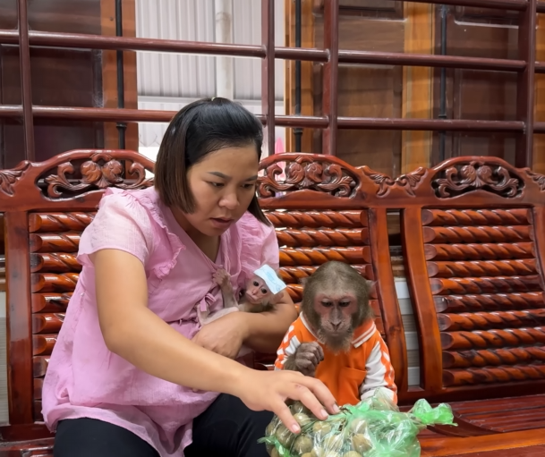 To celebrate, Mom prepared a big breakfast of fruit, milk, and honey. CUTIS helped feed Baby Monkey carefully, handing him small banana slices and clapping whenever the baby took a bite. The room was full of laughter again, the heavy sadness from yesterday completely gone.