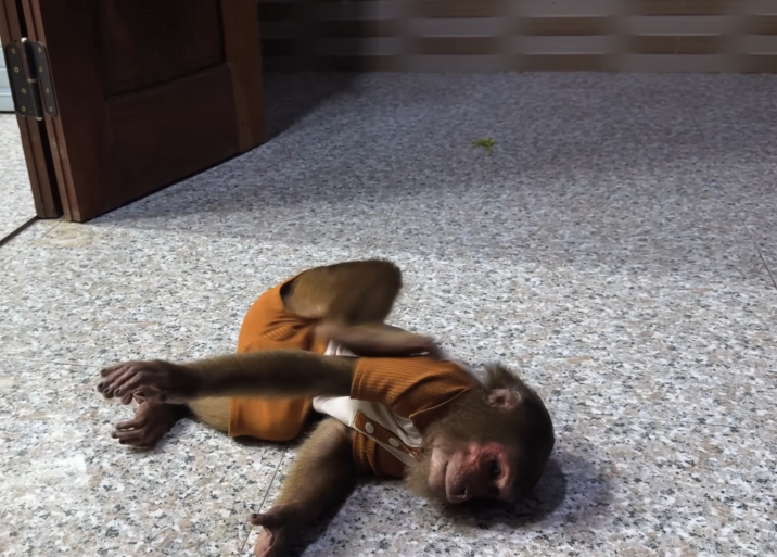 CUTIS grabbed the small bucket and tried pouring water onto Baby Monkeyâs head. But his hands were too small and his aim too wildâthe water missed completely and splashed onto the floor instead. Baby Monkey squealed and jumped back, slipping on the wet floor and landing on his bottom.