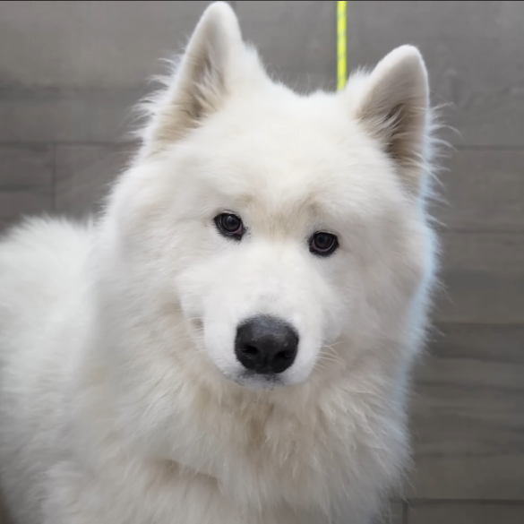 Snowball’s transformation wasn’t about fur or shine — it was about peace. Watching him sit patiently through every step, radiating serenity, reminded everyone that beauty isn’t just something you see. Sometimes, it’s something you feel. And in that quiet, gentle Samoyed smile, the world saw what pure love truly looks like.