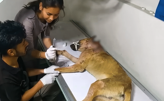 At the shelter, the vet examined him immediately. The tumor was larger than the dog’s own head, irregular in shape, and highly vascular. Infection had begun at several points, causing him to bleed slightly whenever he moved. The prognosis was grave, but there was hope. Surgery was the only chance to save his life.