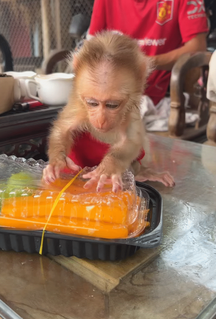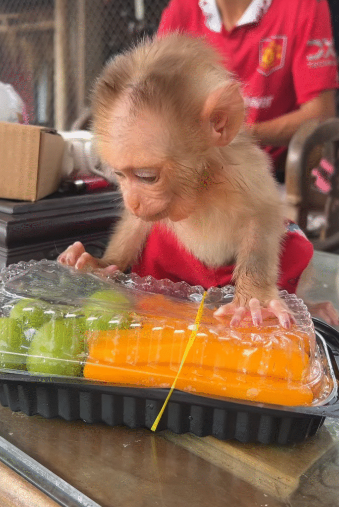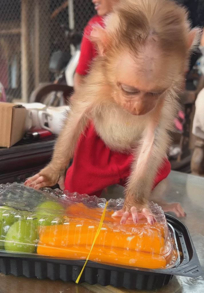 But it wasn’t her mother. It was her friend Momo, a chubby young monkey with a playful grin.